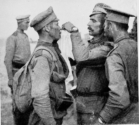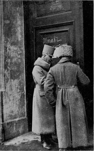 Russian occupation of Przemysl. Austrian officers pay a last visit to the Russian head-quarters before leaving for Lwow.