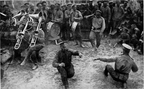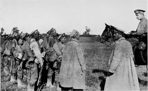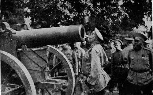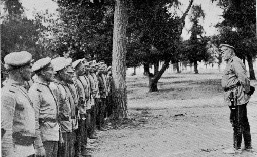 At his invitation I went with him later in the afternoon to look at some new guns that had just come in. They were very interesting and encouraging, but cannot be discussed at present. With them had come new artillerymen, and the general went about addressing each batch. His talk was something like this, freely translated, “Welcome to my command, my good children. You are looking fit and well, and I am glad to have you with me. Now I suppose that you think you have come here to help me hold back the Germans. Well, you are mistaken. 304 We are not here to hold anybody, but to lick the enemy out of his boots, and drive them all clean out of Russia, Poland and Galicia too, and you look to me like the men that could do the job.” The Russian soldiers usually cheer to order, but these soldiers responded with a roar, and when dismissed ran off to their positions cheering as long as they could be seen.