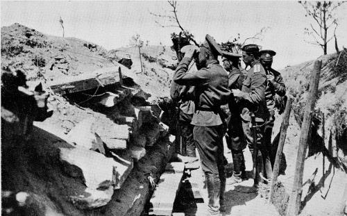 Russian artillery officers in an observation position during the fighting round Lublin.