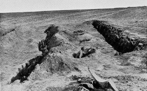 From here by a narrow path we struck off to the west and worked our way up into one of the new front line trenches which are laid out on an entirely new plan, and have been in course of preparation ever since the days of the fighting on the San. They are the best trenches I have ever seen, and are considerably better in my opinion than those on the Blonie line in front of Warsaw which, before this, were the best that had ever come under my observation. Many things that I saw during this day led me to the conclusion that the Russians were doing everything in their power to prevent a repetition of the drive on the Dunajec. The German line of communications here, as I am informed, runs viâ Rawa Ruska, and owing to the difficulties of the terrain between where they now stand and the Galician frontier, it will be very difficult for them to retire directly south. Success in an action here, 307 then, is of great importance to them. If they attack and fail to advance, they must count on the instant depression of the whole Austrian line, for the Austrians even when successful have not been greatly enthusiastic. If they are driven back, they must retire in the direction of Rawa Ruska, across the face of the army standing to the east; they must strike west through Poland, crossing the front of the army lying beside the Vistula; or they must try to negotiate the bad roads south of them, which present no simple problem. If the Russian centre can give them a good decisive blow there is every reason to believe that both flanking armies can participate pretty vigorously in an offensive. No one attaches much importance to the Austrians if the Germans can be beaten. As long as they continue successful, the Austrians, however, are an important and dangerous part of the Russian problem. 308 309