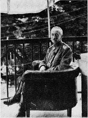 As I have crossed a number of the recuperating fragments of the old Dunajec army in quarters where they were having comparatively an easy time, I was curious to see how the new one was composed. I was received kindly by the General in command, and soon realized that his army, save in number, was practically an entirely new organization built up from corps that have been taken from all quarters of the Russian Front for this purpose. The General himself is new to the command, and so one may regard this organization quite apart from the history of the one that bore the burden of the great Galician drive in May. As soon as I saw the corps here, I came to the conclusion at once that the Russians had reached a point where they intended to make a serious fight. I at once recognized four corps which I have known in other quarters of the war, and wherever they have been they have made a reputation for themselves. The sight of these magnificent troops pouring in made one feel that whether the battle, which every one seems to think is impending, should be won or lost, it would be an action of the most important nature. The new General impressed me as much as any soldier I have seen in Russia. Heretofore 303 he has been in command of a corps which is said to be one of the finest in the whole Russian Army. I had never seen him until this visit, and as a matter of fact I had never even heard of his name. When he came into the room with his old uniform blouse open he was a picture of a rough-and-ready soldier. Steel blue eyes under heavy grey brows and a great white moustache gave an impression of determination, relieved by the gentleness that flickered in the blue of his eyes as well as the suggestion of sensitiveness about the corners of his firm mouth. From the first sentence he spoke, I realized that he meant business, and that this army, when the time came and whatever the results might be, would put up a historic fight.