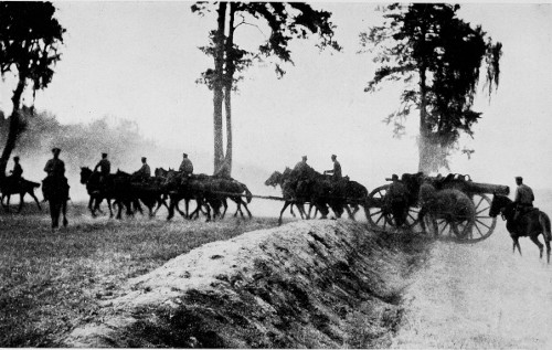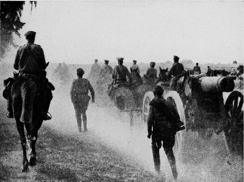 The retreat from Warsaw. Artillery on the road.