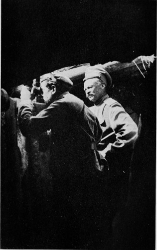 Directly east of us lay the valley of the Bug, as flat as a board, with the whole floor covered with areas of growing crops, some more advanced in ripeness than others, giving the appearance from our elevation of a gigantic chessboard. Away off to the west some big guns were firing occasionally, the sound of their reports and the bursting shells drifting back lazily 296 to us. At one point on the horizon a village was burning, great clouds of dense smoke rolling up against the skyline. Otherwise the afternoon sunshine beat down on a valley that looked like a veritable farmer’s paradise, steeped in serenity and peace. For an hour we remained in this lovely spot, studying every detail of the landscape, and wondering when if ever it would be turned into a small hell of fury by the troops that now lay hidden under our very eyes. We left shortly before six and motored back in the setting sunlight to our head-quarters. Early the next morning I again went to see General Brussilov and almost the first thing he told me was that there had been a stiff fight the night before. The reader may imagine my disappointment to learn that within two hours of my departure the Austrians had launched an attack on the very chessboard that I had been admiring so much during the afternoon in the observation station. From this point, in comparative safety, I could have watched the whole enterprise from start to finish with the maximum of clearness and the minimum of risk. I have never seen a more ideal spot from which to see a fight, and probably will never again have such an opportunity as the one I missed last night.