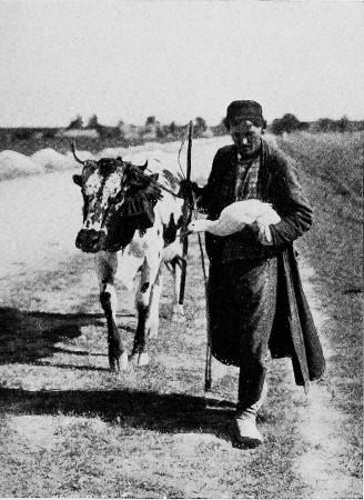 Retreat from Warsaw. A Polish Jew. Note his belongings tied round a cow’s neck.