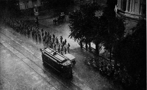 Occupation of Przemysl by the Russians. Austrians leaving as prisoners. The Russians entering the town.