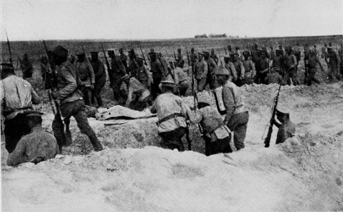 Siberians leaving the last trench before Warsaw.