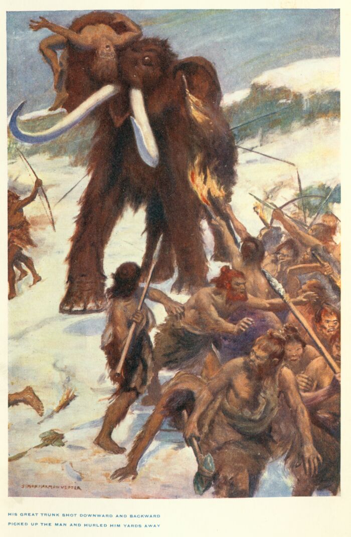 "HIS GREAT TRUNK SHOT DOWNWARD AND BACKWARD, PICKED UP THE MAN, AND HURLED HIM YARDS AWAY"