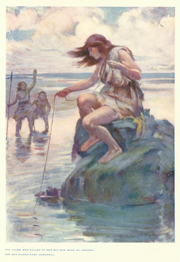 "THE YOUNG MEN CALLED TO HER, BUT SHE MADE NO ANSWER. SHE BUT FISHED AWAY DEMURELY"