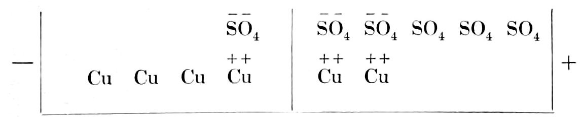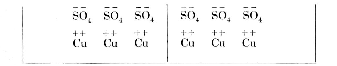 An osmotic production is the arena of complicated chemical phenomena which produce a veritable metabolism. It has long been known that diffusion and osmosis may determine various chemical transformations. H. St. Clair Deville has demonstrated that certain unstable salts are partially decomposed by diffusion. Thus during the diffusion of alum, the sulphate of potash is separated from the sulphate of aluminium. Similarly, when the chloride or acetate of aluminium is caused to diffuse, the acids become separated from the aluminia. This decomposition is the result of the different resistance which the medium offers to the diffusion of different ions. This difference of resistance may even cause a difference of potential between two media, similar to the differences of potential in living organisms. Frequently also a difference of hydration in the chemical substances on either side of an osmotic membrane will determine a chemical reaction, which like all other chemical reactions is accompanied by a corresponding transformation of energy. The study of these chemical metamorphoses and the transformations of energy in osmotic growths has opened up a new subject for experimental investigation in the field of organic chemistry.