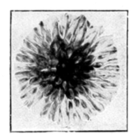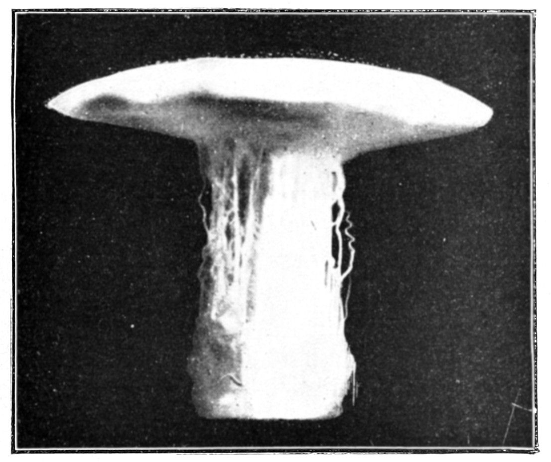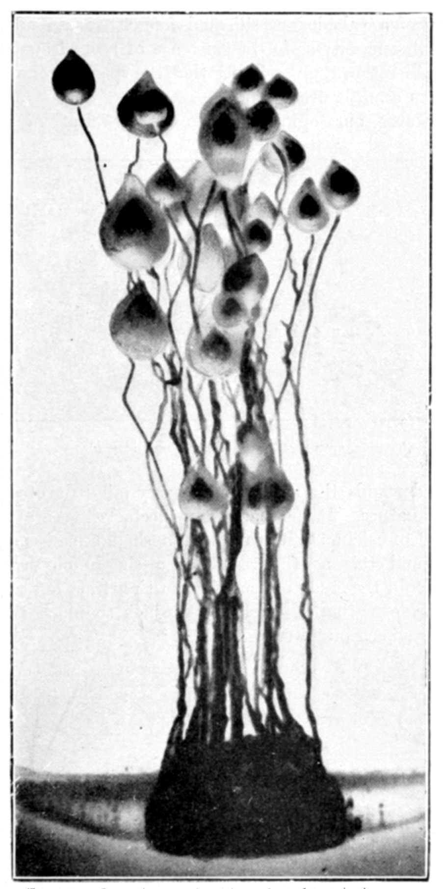 The first and most striking analogy between living beings and osmotic growths is that of form. The morphogenic power of osmosis gives rise to an infinite variety of forms. An osmotic growth, even at the first sight, suggests the idea of a living thing. One need only glance at the photographs of osmotic productions to recognize the forms of madrepore, fungus, alga, and shell. It is wonderful that a force capable {150}of such marvellous results should have hitherto been almost entirely neglected.