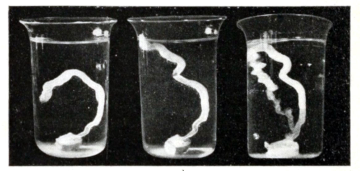 The biological interest of osmotic productions is quite independent of the chemical nature of the substances which enter into their growth. All substances which produce osmotic membranes by the contact of their solutions exhibit phenomena analogous to those of nutrition. Osmotic morphogenesis is a physical phenomenon resulting from the contact of the most diverse substances. It has given us our first glimpse of the manner in which a living being may be supposed to have been formed according to the ordinary physical laws of nature. We cannot at present produce osmotic growths with all the combinations found in living beings, but that is only because chemistry still lags far behind physics in the synthesis of organic forms.