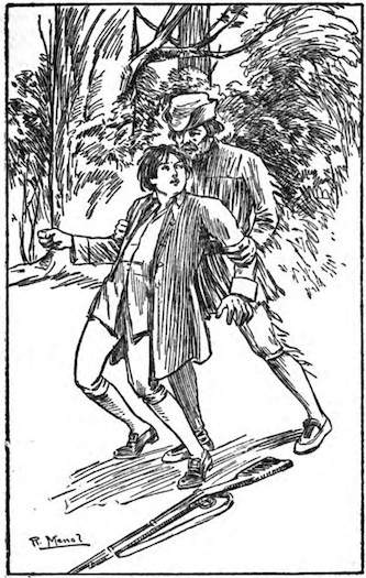 While the Indians were yet at some distance, the youths found that their weight was effectively bending down the tree into the ravine. The change was gradual at first, and then the more slender wood gave quicker response to the strain, so that finally it bent so low into the depths below that the boys instead of climbing up were sliding down toward the tree top. Before the Indians reached a point where they could observe the boys they had disappeared below the level of the ground which marked the margin of the declivity.