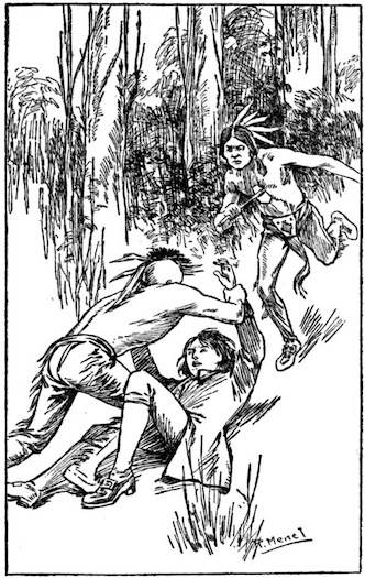 Anyhow, they did not discharge any arrows or throw any tomahawks, which probably saved the youths’ lives, for the Indians, being expert in the use of those weapons, could hardly have missed at so short a range.