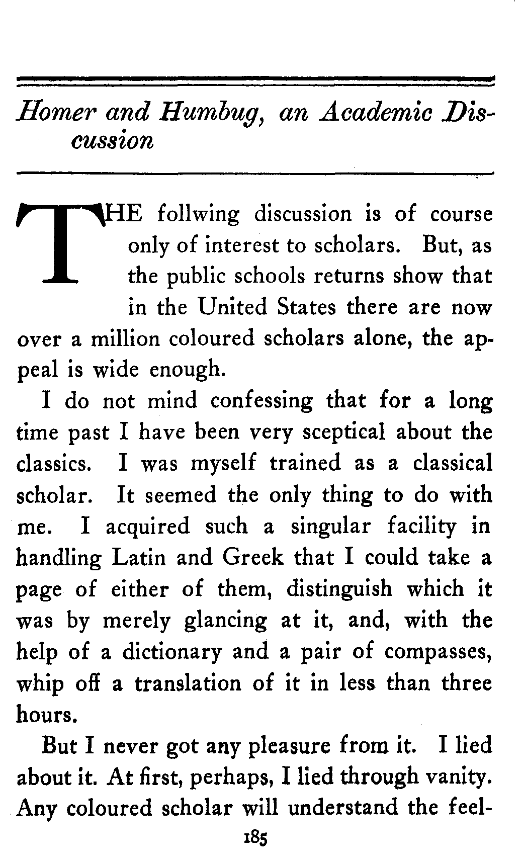 THE following discussion is of course only of interest to scholars. But, as the public schools returns show that in the United States there are now over a million coloured scholars alone, the appeal is wide enough.