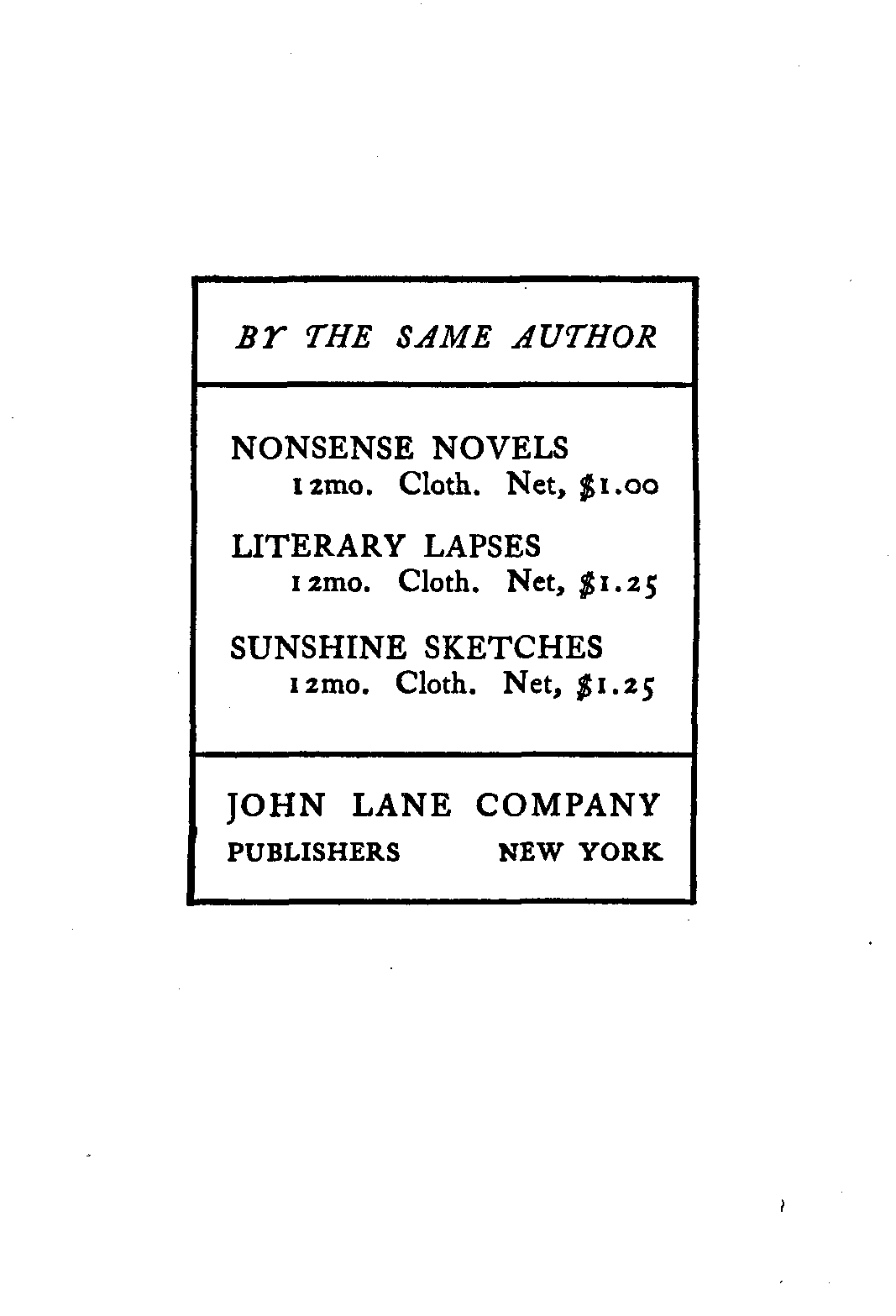: : : LAPSES," "SUNSHINE SKETCHES," ETC. : : :