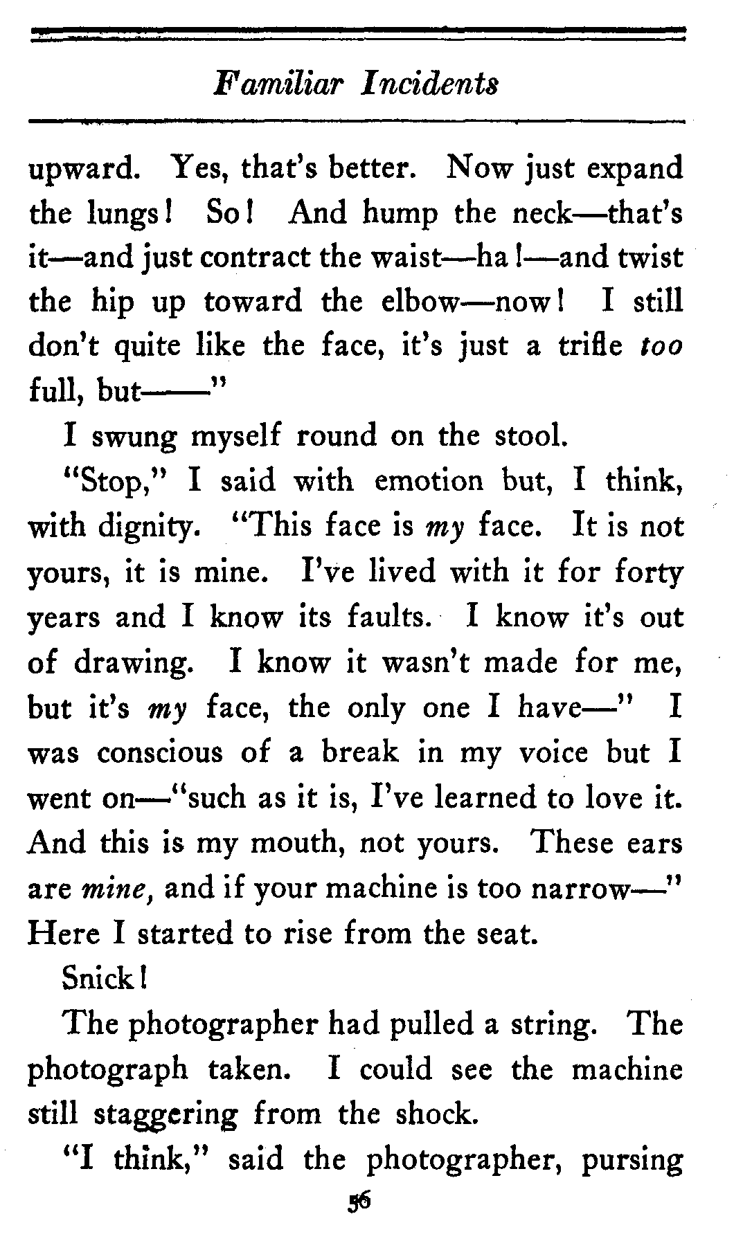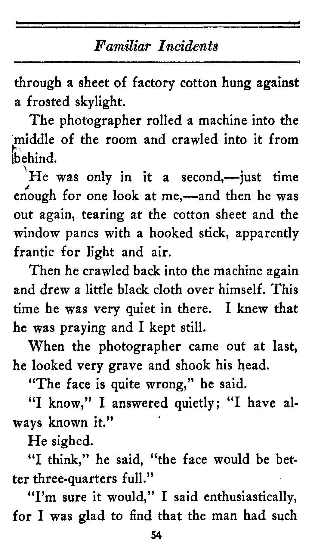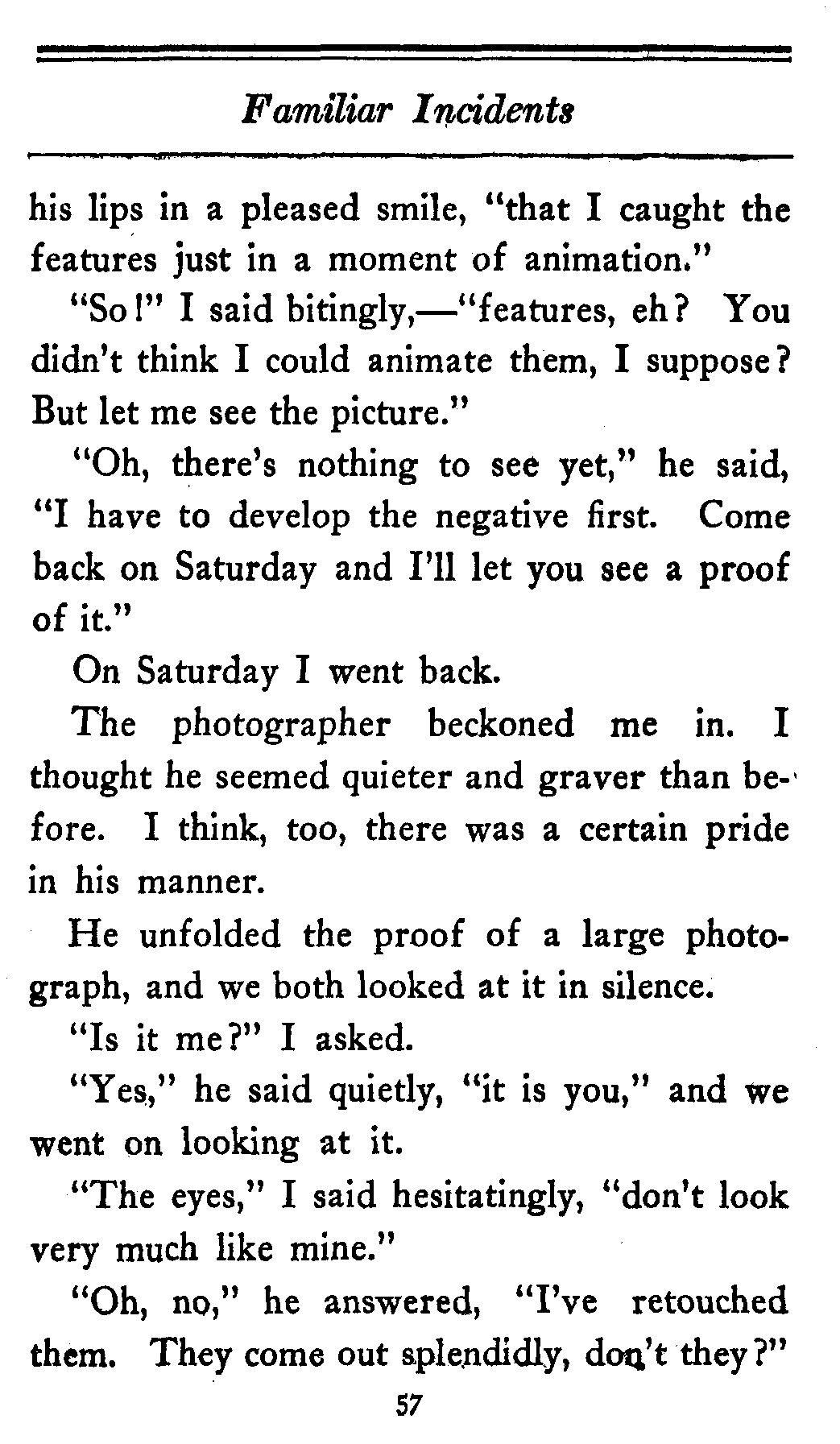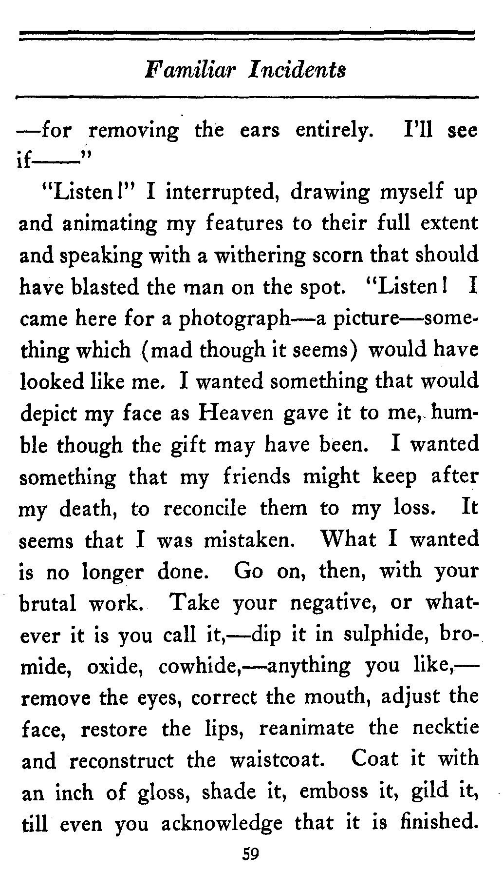"Stop a minute," I said. "I am willing to take your story, but there are certain things, certain small details which I want to change."