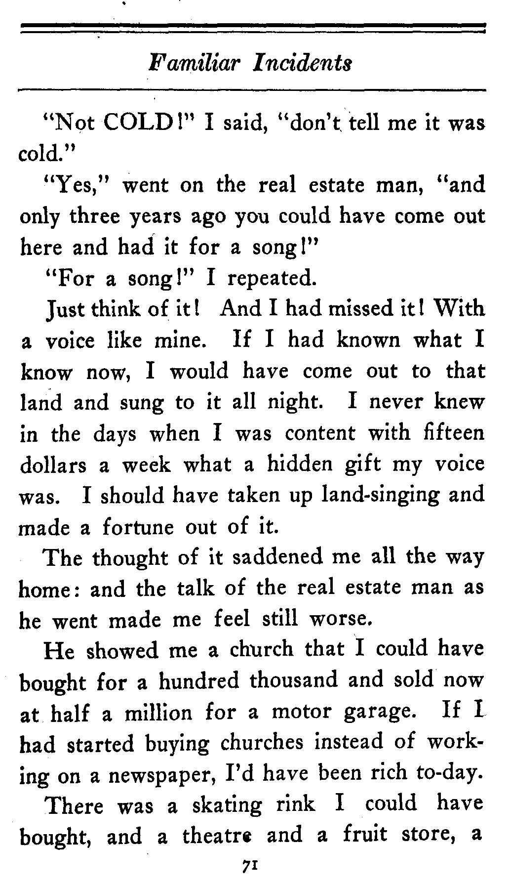 | He showed me a church that I could have bought for a hundred thousand | 72 |