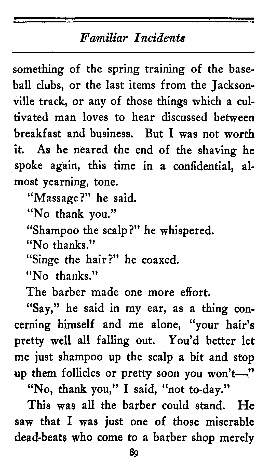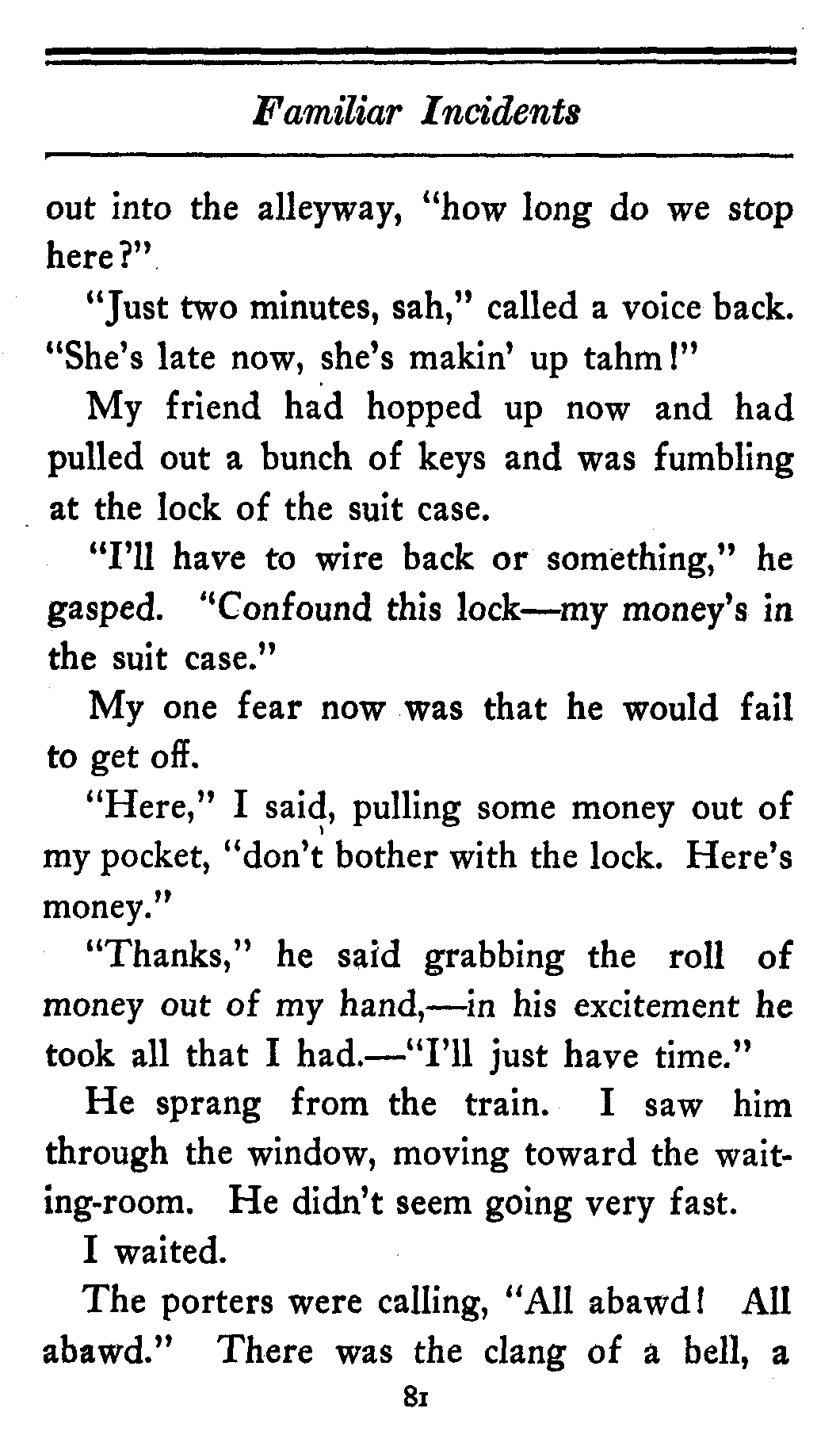 | FAMILIAR INCIDENTS | ||