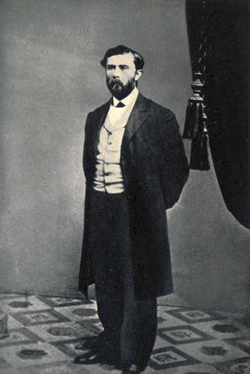 Details of Judah’s activities between 1854 and 1860 are difficult to obtain. We know that he visited Washington in order to procure the passage of a bill making grants of land to California for railroad purposes. In 1859 he was the delegate from Sacramento to the Pacific Railroad Convention, where he urged the importance of a thorough survey before any decision should be made regarding the route of a transcontinental railroad. When the convention adjourned he was sent to Washington at his own expense to urge the passage of a[6] bill such as the convention favored. He returned in 1860 without having accomplished his purpose, but convinced that Congress was in favor of granting federal aid to a railroad to California from the East, and that it would act when more important matters had been disposed of.[3]