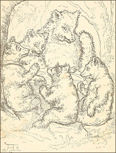 “I went away before they were old enough to23 go out, so I couldn’t tell you much about them if it were not for April. April and I,” said February, with a sentimental air, “were always great friends. She used to see the Mamma Bear and her little ones go walking together. One day when they were in the wood a barking of dogs and blowing of horns was heard.