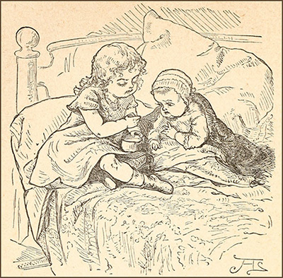 “‘All day yesterday,’ went on the little one, ‘and all night long. I cried and cried,—how I cried, my Kitty! It wasn’t a bit a nice Christmas, though the Christ-child brought me such a doll! I could think of nothing but my Katchen, lost all day long.’