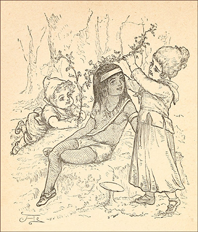 “I’m getting tired, though,” she goes on. “Let’s rest awhile, and take a walk. We never8 came so far as this before, did we? I want to go up that pretty path, and see where it comes out. Don’t you think we have got wood enough, Max?”
