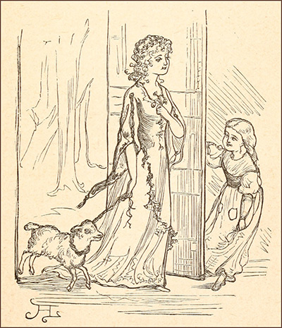 “‘Oh dear!’ she sighed to herself, ‘what a thing it is to have a Step-mother! Once we were happy! The good Papa loved me, and I slept in Gretchen’s arms. The fire was bright in those days. Porringers of hot milk stood by it, and always a saucer full for me. Ah, dear days! The moment I saw that nose of hers, I knew they were over! Such a nose! so red, so long. Why did the Papa marry her? Men are so foolish.209 I hissed, I spit, I warned,—nobody listened, and here I am. The good Papa dares not protect me. Gretchen weeps: the Step-dame bars the door. Hew! what a wind! What a Christmas Eve! Poor Gretchen! Poor me!’ Overcome by her sorrows, the Cat gave a loud wail, which rang out into the chilly night. Then the door opened softly.
