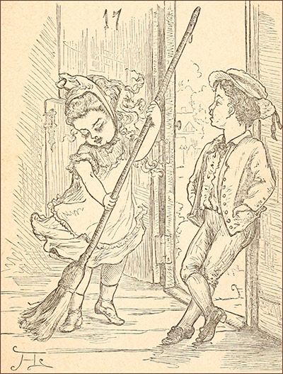 “Courage!” he said. “It’s always darkest just before day. Why, the Lord takes care of birds and cats and squirrels, of a whole world full of tiny winged creatures, and all the fishes of the sea. Do you suppose he will forget just you two, out of all the little ones whom he protects? Never! Why, I could tell you,—but I must not, it is not permitted,—only, even a Month may venture on a hint, and so I’ll just say, wait, and see what’s ahead!” And December ended this mysterious sentence with pursing up his lips very tight, winking hard with both eyes, and nodding his head in a singular and provoking manner.