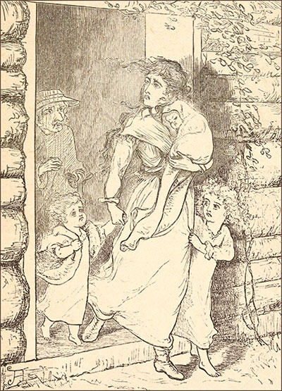 AND now the last evening of November was come; and Winter, stealing a march on the departing Autumn, let loose, as if in a hurry to begin, his first storm upon the world. Strong winds raged in the Forest, driving the leaves in clouds before them, and snapping and rending the patient, tortured trees. Ink-black clouds scared away the Moon, when she tried to shine; sharp sleet struck the windows of the Woodman’s hut, like a myriad of tiny fists; and the blast wailed and moaned about the chimney, like the voice of one in pain.