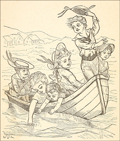 “And my roses,” wept June, a fair young woman. “See, I ought to have a whole lap full, and there are only five. Oh, naughty, naughty boy!”