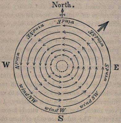 “By no means. It has, indeed, been raised to the dignity of a science, and professorships endowed for its advancement.[Pg viii] Some books have been written, and many theories broached in relation to it; and innumerable observations of the states of the barometer and thermometer, of the clouds, and the quantity of fallen rain, and the direction and force of the wind—made and recorded simultaneously in different countries—have been published and compared; and a great many important facts established, and tables of ‘means’ constructed, and just inferences drawn, yet the few and simple arrangements upon which all the phenomena depend, and their philosophy, have not yet been clearly elicited or understood.”