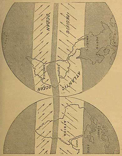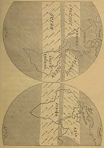 | The trade wind region—Its extent and arrangements—Its belt of daily rains and movable character—The trade winds—The extra tropical belt of rains—Connection between them and their annual movements—The counter-trades—Their origin and situation—One of them constitutes our aerial current—It originates in the South Atlantic as a surface-trade—Anomalies of the trade wind region—Dry seasons—Humboldt’s description of them—Exist where the surface trades are situated—The rainless countries—Concentrated counter-trade—Monsoons—Received theory in relation to them a fallacy—Cause of the great central phenomena—Calorific theory a fallacy—Land not hotter under the belt of rains, nor sea materially so—Theory should be abandoned | 52 |