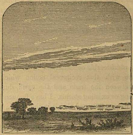 In the fall of 1853, in the evening of a fair autumnal day, I started for Hartford, in the express train. Just above Meriden, an acquaintance sitting beside me, who had been felicitating himself on the prospect of fine weather for a journey to the north, called my attention to several small patches of scud—clouds he called them—to the eastward of us, between us and the full clear moon, which seemed to be enlarging and traveling south—and asked what they meant.