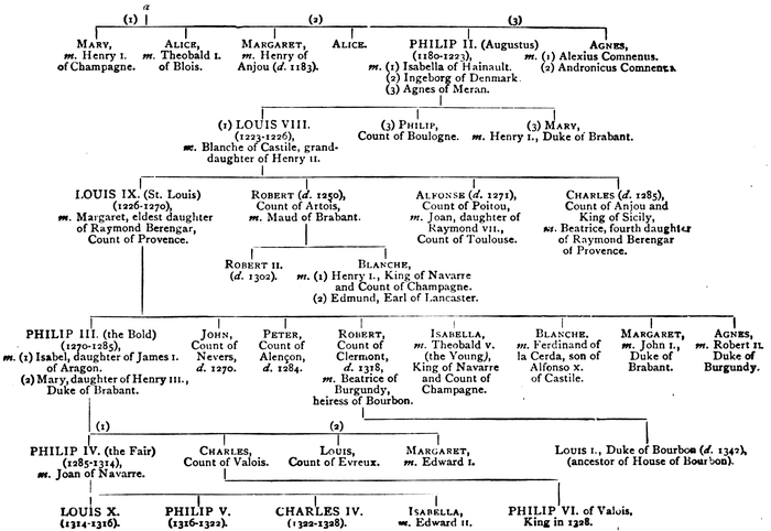 To the general modern authorities for French history for this period must now be added the valuable new Histoire de France edited by M. Ernest Lavisse (Hachette), of which the three half-volumes covering this period are now published. They are: Les Premiers Capétiens (987–1137), by Achille Luchaire, II. ii.; Louis VII., Philippe Auguste, Louis VIII., by Achille Luchaire, III. i.; and Saint Louis, Philippe le Bel, les derniers Capétiens directs, by Ch. V. Langlois, III. ii. A large collection of facts covering the whole subject of this book will soon be available in the relevant volumes of the Cambridge Mediæval History. The maps in R. L. Poole’s Oxford Historical Atlas are very valuable for the elucidation of the historical geography of the period.