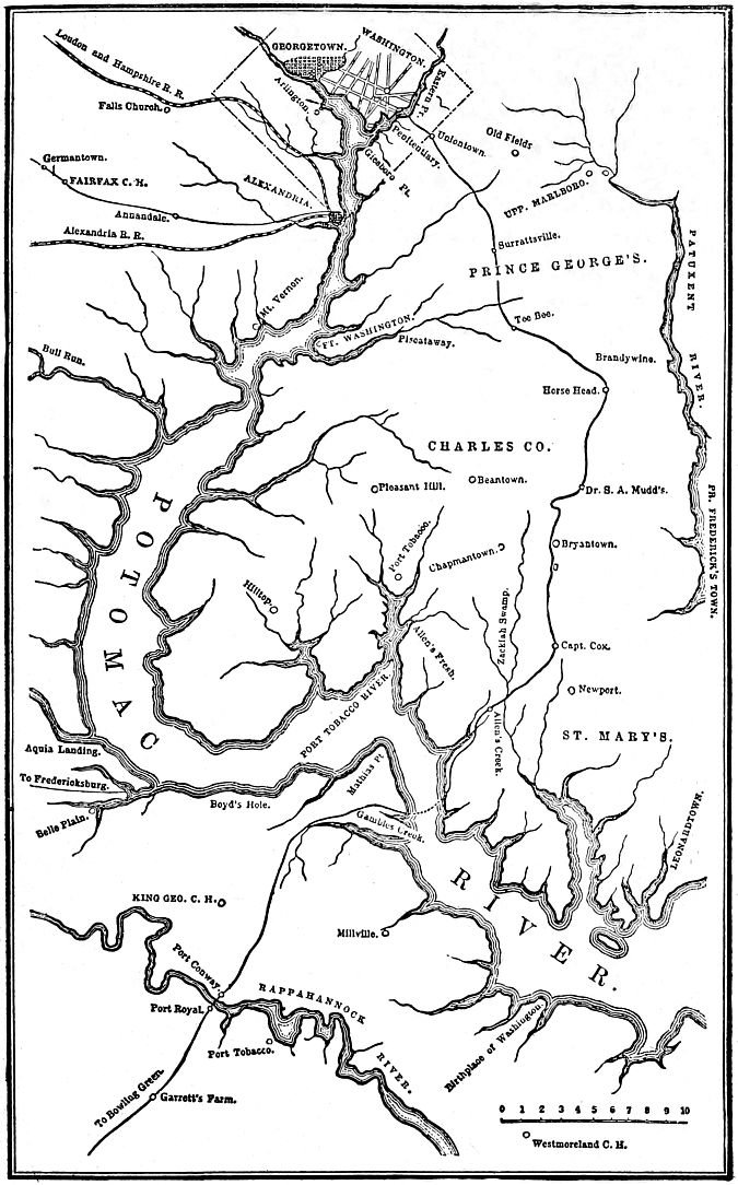 2 The evidence before the Commission left Booth and Herold, from the time they left Dr. Mudd's until they arrived at Port Conway, unaccounted for. I am indebted to articles in the Century Magazine, by George A. Townsend, Major Ruggles, and Lieutenant Bainbridge, for the ability to fill up this interval, and to General Baker's "History of the Secret Service," for facts connected with the capture, death, and burial of Booth.—Author.