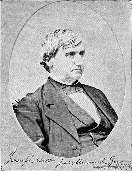 Of Judge Holt's life little need be said. Born and reared in Kentucky, of the best blood of the State, he had achieved fame and stood in the front rank with the great lawyers and orators of that State before the rebellion began, and before he was called to the Cabinet of James Buchanan, first, as Postmaster-General, and afterward as Secretary of War, to fill the place made vacant by the retirement of the traitor John B. Floyd. Judge Holt was a man of collegiate education, a student and a scholar of wide and varied reading, and a rhetorician and logician second to few men in the country. Of the next generation after Henry Clay, he was of the time and type in intellectual grasp and power of the Marshalls, the Breckinridges, and the Crittendens of that State. He breathed in the spirit of loyalty, patriotism, and love of the Union of Clay, and never doubted, never swerved in giving all his powers—in dedicating his life to the work of saving the Union. It is related by the historian that at one of the Cabinet meetings of President Buchanan, when several of the Southern secretaries were still occupying their places and were boldly demanding that the forts at Charlestown should be evacuated, and Mr. Buchanan was too weak to take a position against them, Mr. Stanton, who had been called to fill the office of Attorney General, sprang to his feet and said, "Mr. President, it is my duty, as your legal adviser, to say that you have no right to give up the property of the government, or abandon the soldiers of the United States to its enemies, and the course proposed by the Secretary of the Interior, if followed, is treason, and will involve you and all concerned in treason!" For the first time in this Cabinet treason had been called by its true name. Floyd and Thompson, who had had everything their own way, sprang fiercely to their feet, while Mr. Holt sprang to Mr. Stanton's side, indorsing his utterances, and ready to uphold him in any struggle. Mr. Buchanan begged that there would be no violence, and for the gentlemen to resume their seats. Thus bolstered by Mr. Stanton and Judge Holt, the President determined not to withdraw Major Anderson. Soon after this meeting, Floyd resigned, and Judge Holt was appointed Secretary of War in his place.