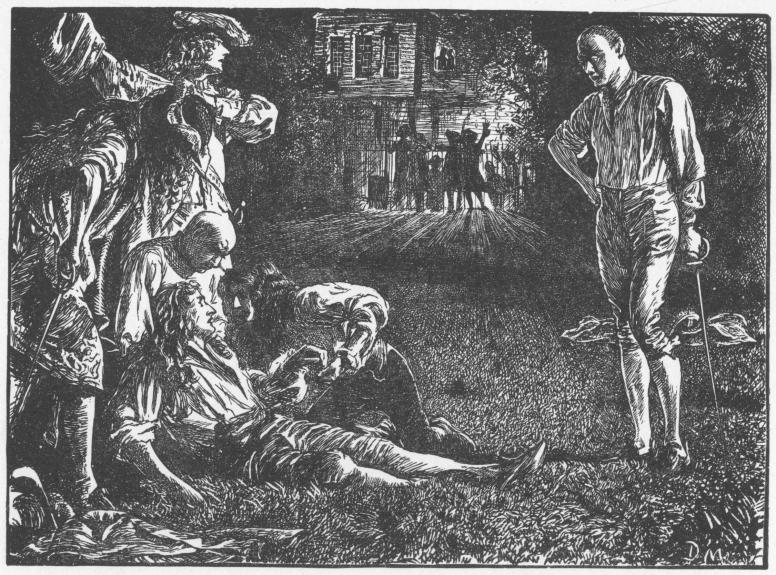 No book on the artist, however, would be complete which omitted all reference to his literary attainment; nor would it be in order in an essay of this extent not to seek to demonstrate that connection which always exists between the life and the work of an artist of distinctive temperament. The author has endeavoured, in the chapter devoted to outlining the main incidents of du Maurier's career, to regard the feeling of his representatives that the autobiography of the novels is itself so complete and sensitive as scarcely to call at present for anything supplemental. He wishes to acknowledge the kindness of the artist's family in lending him portraits, sketch-books, and manuscript with the permission for reproduction; also of Mr. W. Lawrence Bradbury, so zealous a guardian of all that redounds to the fame of his great journal, for every kind of assistance; and of Sir Francis Burnand, du Maurier's Editor and comrade, for letters assisting him to form an impression of du Maurier in the flesh. Messrs. Smith, Elder & Co. have also been generous in allowing the reproduction of the four drawings included here, which appeared originally in the Cornhill Magazine. The author only wishes that he felt that what he has written more justified this consideration from everyone who was approached in connection with his undertaking.