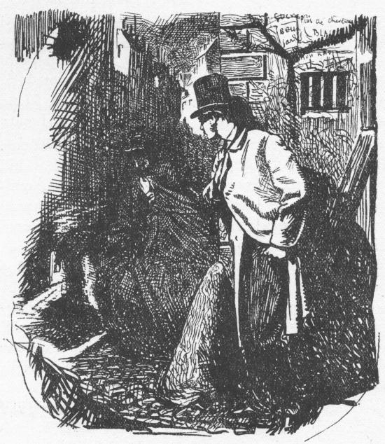 Taken in the order in which they are printed here, the first illustrations show the range of effect and variety of line which the artist was afterwards to narrow into the conventions by which he is now chiefly remembered. But if such an effect as that in the picture Caution, for instance, would not have been possible with him in his last period, it was because the nature of the subjects required on the journal which absorbed most of his energies afforded no stimulus for anything so Rembrandtesque. He brought such possibilities of style over from his romantic period in The Cornhill Magazine, and it must be admitted that the effect in this drawing seems too powerful for the music-hall comedy it has to carry off.