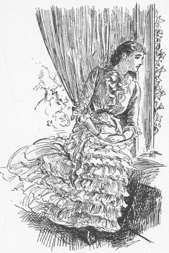 So far as one can judge from the study for an illustration to Wives and Daughters (facing page 36), which we print with the illustration as it actually appeared in the Cornhill, seems to show that the artist could carry the conception of a drawing a long way without reference to a model. The sketch of the girl near the window affords us, in its Whistlerian suggestiveness and refinement, another instance of the purely artistic qualities which some critics have denied du Maurier the ability to secure, his professional ready style being too quickly accepted as completely expressing to the full his artistic nature. Du Maurier seems to have purchased his great journalistic and worldly success at the expense of qualities not altogether dissimilar from those shown in the works of Whistler, his companion at the beginning of his career. The pen sketch referred to of the girl by the window, the soft shadow outlining her face and falling upon the chair, the play of the line that suggests the contour of her figure, all reveal something of the refined skill, economy, and sensitiveness of expression that distinguished everything of Whistler's.