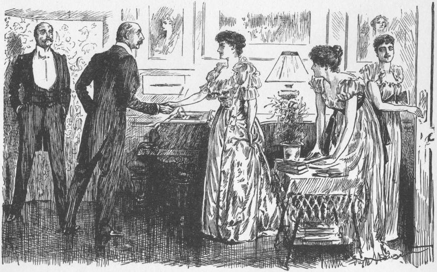 The rise of the merchant capitalist upon the results of industrial enterprises rendered possible through the invention and rapid perfecting of machinery, created a class who suddenly appeared in the drawing-rooms of the aristocrats as strangers. Du Maurier himself seems to join in the amazement at their intrusion. Much of this first surprise is the theme of his art. Before the death of the artist the newcomers had proved their right to be there, having shamed an Aristocracy, which had lost nearly all its natural occupations, by bringing home to it the fact that the day was over for despising men who traded instead of fighting, who achieved through barter what the brave would once have been too proud to take except by conquest. The business of the original division of human possessions by the sanguinary method was well over; it was now the merchant's day. It was plain that trade could no longer be despised, when, literally in an age of peace and inventive commerce, indolence was the only alternative to engagement in it.