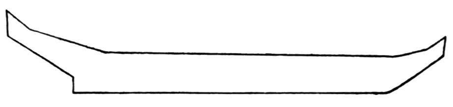 It is noticeable also that there seems to be a gradual modification of all types of canoes as we move southward toward California. On Puget sound, five canoes out of six show a lift in the gunwales toward bow and stern. On the coast south of the Straits of Juan de Fuca, as shown by the photographs of Curtis,[20] canoes other than the shovel-nose have an abrupt “raise” at the prow, but amidships and at the stern they are “flush,” the gunwales forming a straight horizontal line. Apparently this arrangement might be considered as an approach to the California type of canoe, where the gunwales are perfectly flat, without any lift at either end.