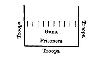 [48] The conflicts at Montmirail, Vauchamps, Champanbert, and Montereau, in the campaign of 1814, were combats, not battles. Ligny was a pitched battle, but it could not be called a decisive victory. No prisoners or standards, and few guns, were taken.