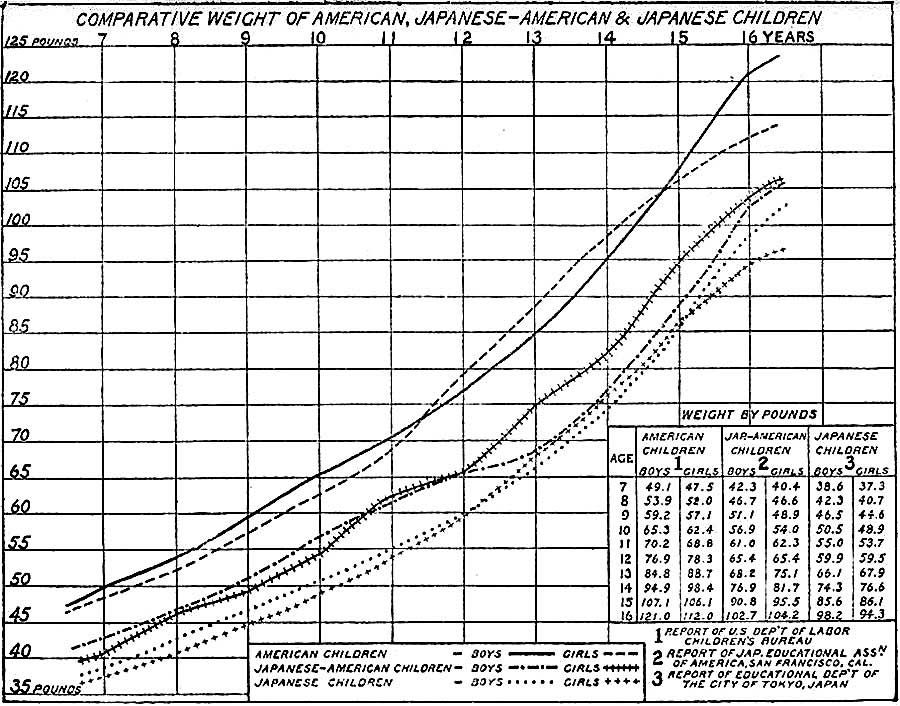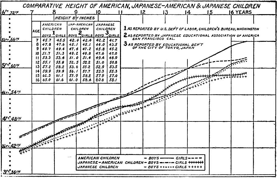 | Charts on Comparative Height and Weight of American, Japanese-American, and Japanese Children. | |