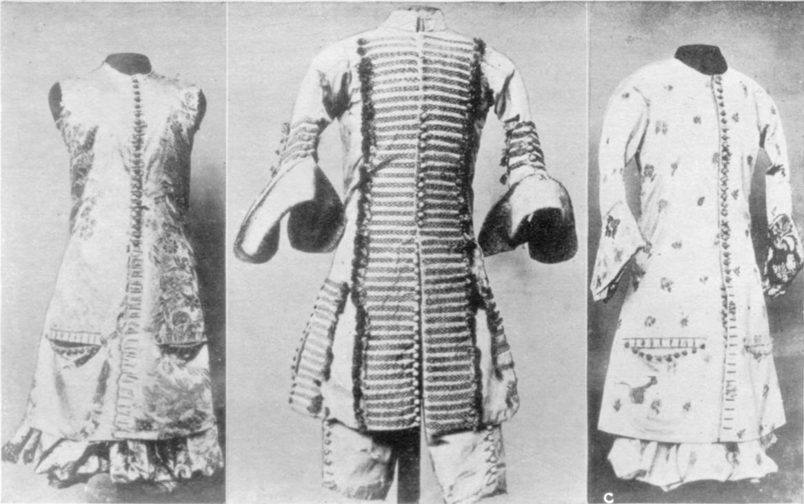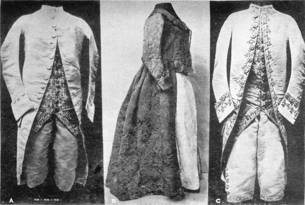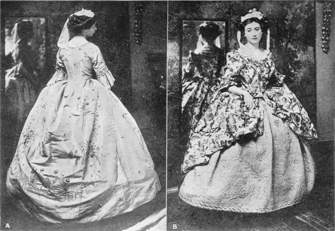 - B. Brocade Dress and Quilted Petticoat, 1750-65.