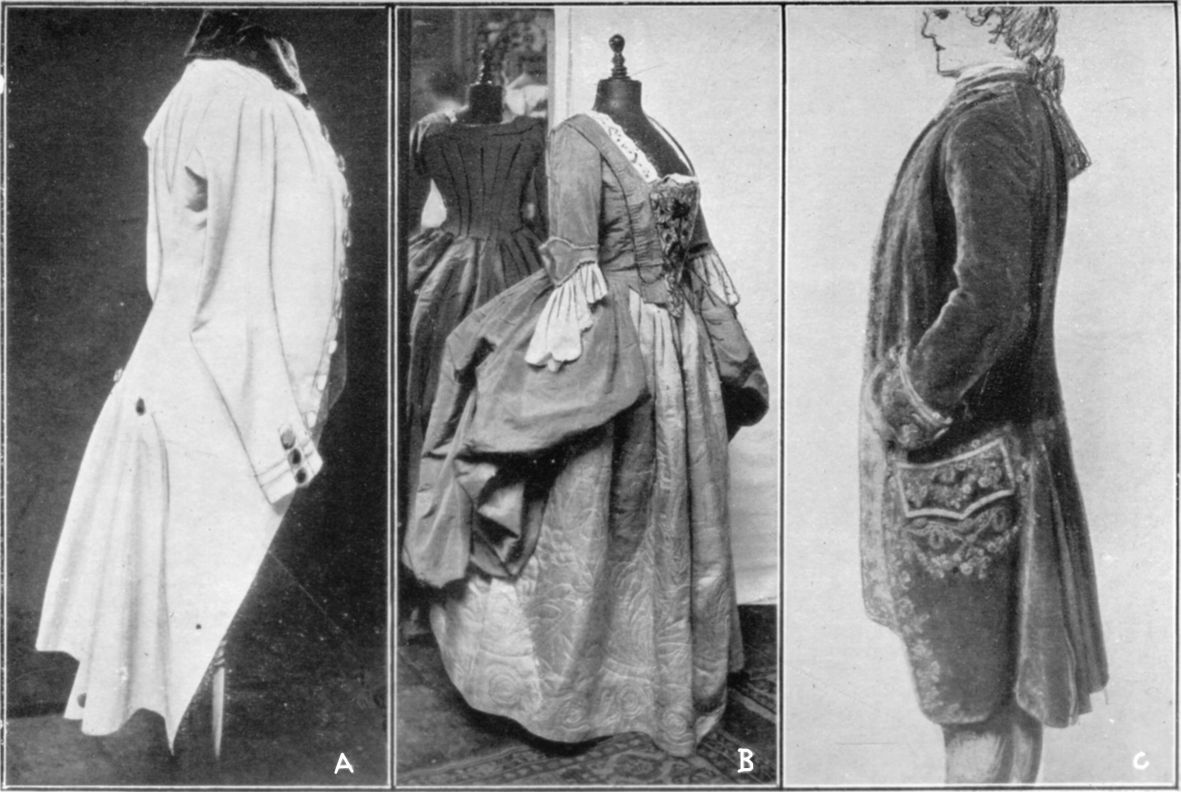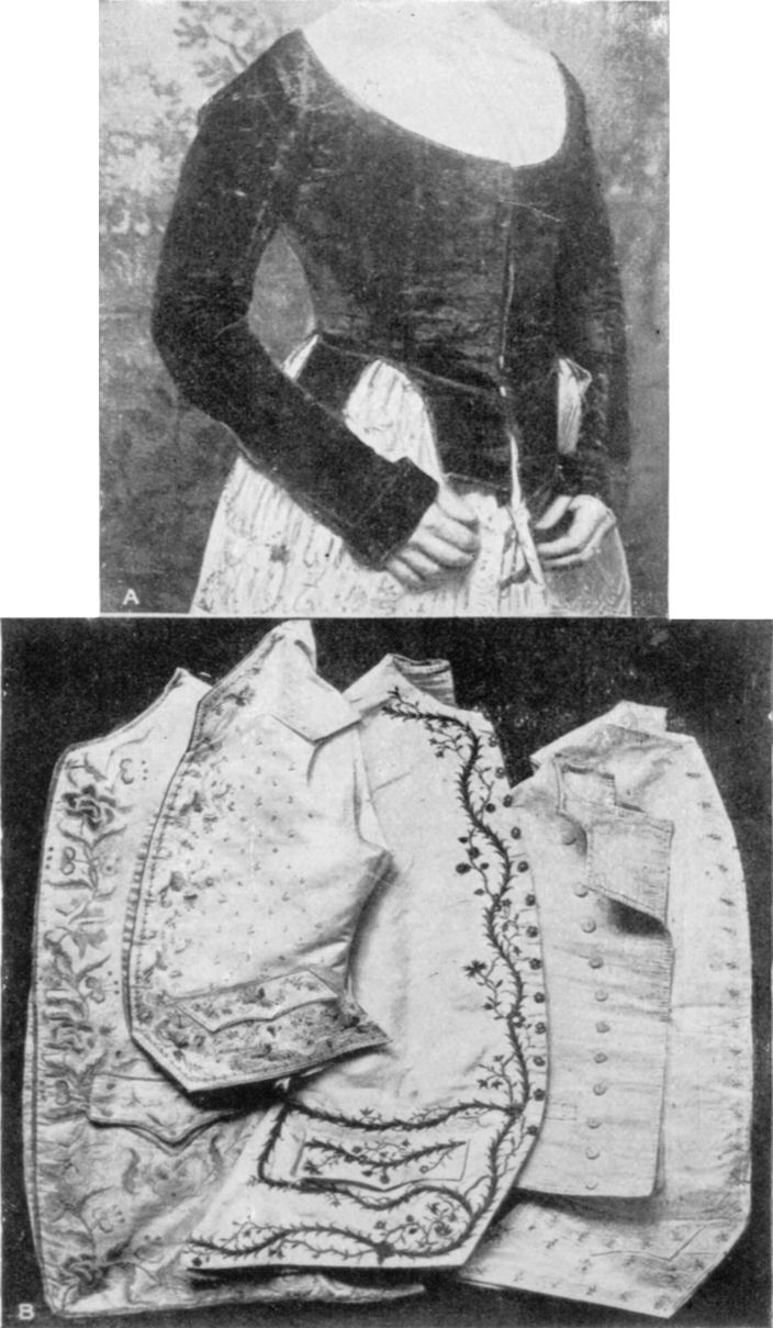 In such ephemeral productions it would be vain to seek for certain fine types of excellence which were once common when dresses were not so lightly cast aside. So it is necessary that we should understand what the ruling principle is, for it is one which will not be set aside at the bidding of well-meaning reformers. I will only venture to say that it would be desirable to make the attempt to separate in some degree the more constant elements of dress from those which are more variable. It[xvi] will seem a pity to more than outsiders that a "well-dressed" person need wear so little which deserves to have been made by human hands, and nothing which deserves to be preserved. Fine laces and jewels are allowed to be antique—could not the circle of such things be a little broadened? A properly groomed man carries about on him literally nothing worth looking at. We might surely look for a watch-chain with some delicacy of handiwork—something beyond mechanical reductions of iron cables. Fine buttons might conceivably be made to go with the studs, or be made of crystal, amethyst, and silver or gold. Women might allow of the transfer of fine embroidered applications from one dress to another, or make more use of clasps and the like. I am confident that when it is pointed out, it will be felt as a shortcoming that no part of a fine lady's dress need now be too good to throw away. Although the present volume is cast into the form of a history, it is also intended to be a book of suggestions;[xvii] and the hope is held that modern dressmakers may refer to it as much as, or more than, those who are interested in dress from the historical point of view.