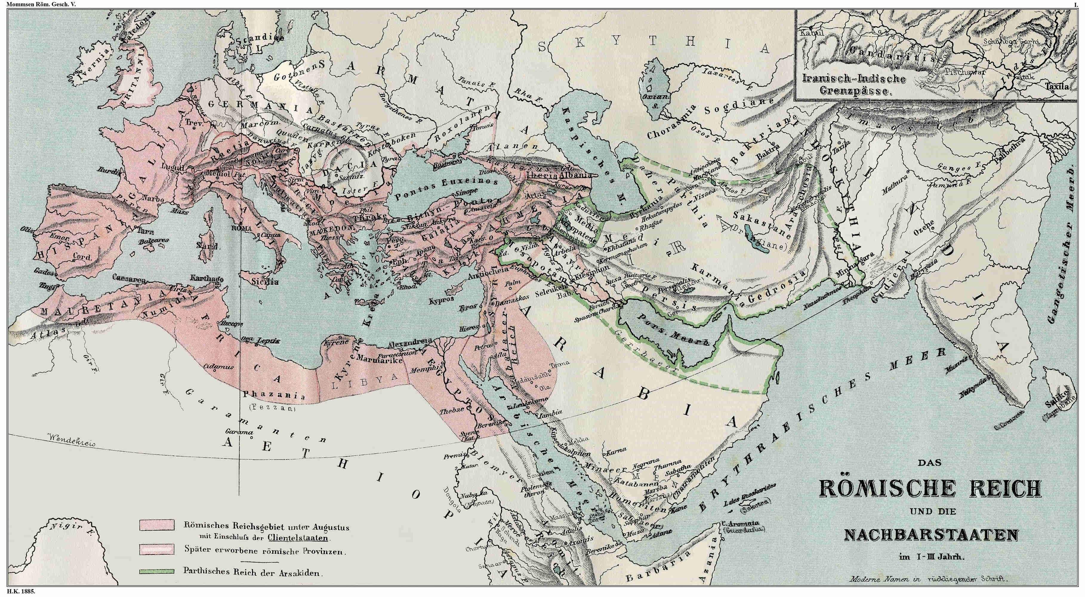 The Alpine passes and the north slope of the Alps were thus in secure possession of the Romans. Beyond the Alps there stretched to the east of the Rhine the land of the Germans; to the south of the Danube that of the Pannonians and the Moesians. Here, too, soon after the occupation of Raetia, the offensive was taken, and nearly contemporaneously in both directions. Let us look first at what occurred on the Danube.