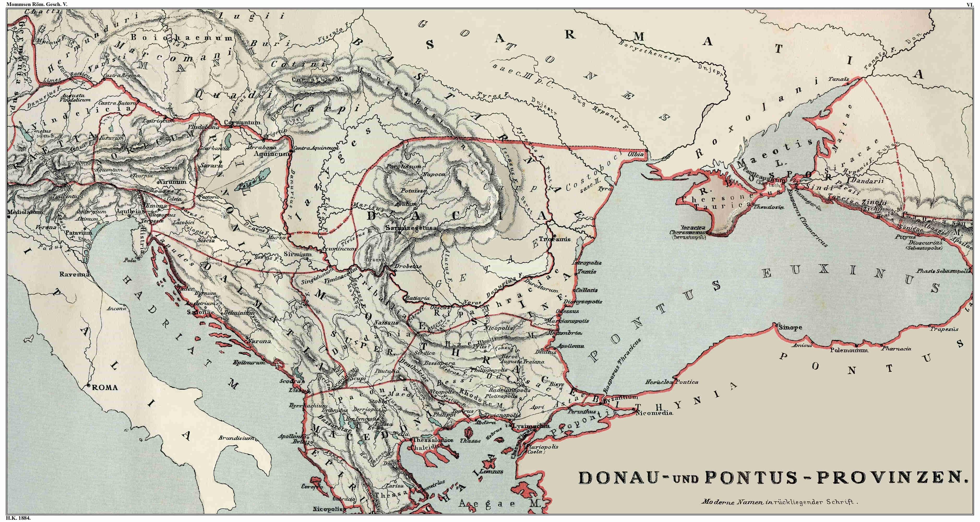 Macedonian frontier.Macedonia had been for centuries a Roman province. As such, it did not reach beyond Stobi to the north and the Rhodope mountains to the east; but the range of Rome’s power stretched far beyond the frontier proper of the country, although varying in compass and not fixed in point of form. Approximately the Romans seem to have been the leading power at that time as far as the Haemus (Balkan), while the region beyond the Balkan as far as the Danube had been possibly trodden by Roman troops, but was by no means dependent on Rome.1 Beyond the Rhodope mountains the Thracian dynasts, who were neighbours to Macedonia, especially those of the Odrysians (ii. 309)ii. 290., to whom the greatest portion of the south coast and a part of the coast of the Black Sea were subject, had been brought by the expedition of Lucullus12 (iv. 41)iv. 39. under the Roman protectorate; while the inhabitants of the more inland territories, especially the Bessi on the upper Maritza, were perhaps called subjects, but were not so, and their incursions into the settled territory as well as retaliatory expeditions into theirs were of constant occurrence. Thus, about the year 694 60., Augustus’ own father, Gaius Octavius, and in the year 711,43. during the preparations for the war against the triumvirs, Marcus Brutus had fought against them. Another Thracian tribe, the Dentheletae (in the district of Sofia), had, even in Cicero’s time, on an incursion into Macedonia, threatened to besiege its capital Thessalonica. With the Dardani, the western neighbours of the Thracians, a branch of the Illyrian family, who inhabited southern Servia and the district of Prisrend, Curio, the predecessor in office of Lucullus, had fought successfully; and ten years later Cicero’s colleague in the consulate, Gaius Antonius, unsuccessfully in the year 692 62.. Below the Dardanian territory, again, there were settled close to the Danube Thracian tribes, the once powerful but now reduced Triballi in the valley of the Oescus (in the region of Plewna), and farther on, along both banks of the Danube to its mouth, Dacians, or, as on the right bank of the river they were usually called by the old national name which was retained also by their Asiatic kinsmen, Mysians or Moesians, probably in Burebista’s time a part of his kingdom, now once more split up into different principalities. But the most powerful people between the Balkan and the Danube at that time were the Bastarnae. We have already on several occasions met with this brave and numerous race, the eastmost branch of the great Germanic family (ii. 308)ii. 290.. Settled, strictly speaking, behind the Transdanubian Dacians beyond the mountains which separate Transylvania from Moldavia, at the mouths of the Danube and in the wide region from these to the Dniester, they were themselves outside of the Roman sphere; but from their ranks especially had both king Philip of Macedonia and king Mithridates of Pontus formed their armies, and in this way the Romans had often already fought with them. Now they had crossed the13 Danube in great masses, and established themselves north of the Haemus; in so far as the Dacian war, as planned by Cæsar the father and then by the son, had doubtless for its object to gain the right bank of the lower Danube, it was not less directed against them than against the Dacian Moesians on the right bank. The Greek coast towns in the barbarian land, Odessus (near Varna), Tomis, Istropolis, hard pressed by these movements of the nations surging around them, were here as everywhere from the outset clients of the Romans.