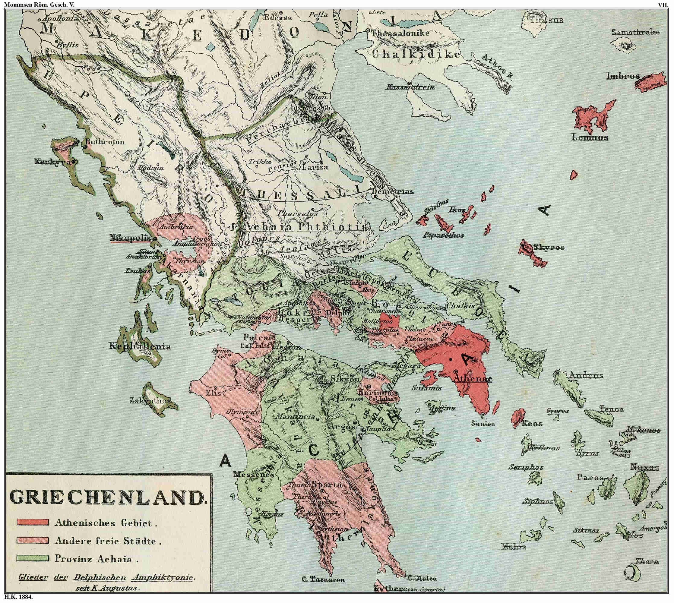 Here, however, another element had to be taken into account. In the war between Caesar and Pompeius the native Dalmatians had as decidedly taken part for the latter as the Roman settlers there had taken the side of Caesar; even after the defeat of Pompeius at Pharsalus, and after the Pompeian fleet had been driven from the Illyrian waters (iv. 456)iv. 434., the natives continued their resistance with energy and success. The brave and able Publius Vatinius, who had formerly taken a very effective part in these conflicts, was sent with a strong army to9 Illyricum, apparently in the year before Caesar’s death, and that merely as the vanguard of the main army, with which the Dictator himself intended to follow in order to overthrow the Dacians, who just then were putting forth their rising power (iv. 305)iv. 291., and to regulate the state of affairs in the whole domain of the Danube. The execution of this plan was precluded by the daggers of the assassins. It was fortunate that the Dacians did not on their part penetrate into Macedonia; Vatinius himself fought against the Dalmatians unsuccessfully, and sustained severe losses. Thereafter, when the republicans took up arms in the East, the Illyrian army joined that of Brutus, and for a considerable time the Dalmatians remained free from attack. After the overthrow of the republicans, Antonius, to whom, in the partition of the empire, Macedonia had fallen, caused the insubordinate Dardani in the north–west and the Parthini on the coast (eastward from Durazzo) to be put to rout in the year 715,39. when the celebrated orator Gaius Asinius Pollio gained triumphal honours. In Illyricum, which was under Caesar, nothing could be done so long as the latter had to direct his whole power to the Sicilian war against Sextus Pompeius; but after its successful termination Caesar personally threw himself with vigour into this task. The small tribes from Doclea (Cernagora), as far as the Iapydes (near Fiume), were in the first campaign (719)35. either brought back to subjection or now for the first time subdued. It was not a great war with pitched battles of note, but the mountain–conflicts with the brave and desperate tribes, and the capture of the strongholds furnished in part with Roman appliances of war, formed no easy task; in none of his wars did Caesar display to an equal extent his own energy and personal valour. After the toilsome subjugation of the territory of the Iapydes, he marched in the very same year along the valley of the Kulpa to the point where it joins the Save; the strong place Siscia (Sziszek) situated at that point, the chief place of arms of the Pannonians, against which the Romans had never hitherto advanced with success, was now occupied and destined as a basis10 for the war against the Dacians, which Caesar purposed next to undertake. In the two following years (720, 721)34, 33., the Dalmatians, who had for a number of years been in arms against the Romans, were forced to submit after the fall of their fortress Promona (Promina, near Dernis, above Sebenico). Still more important than these military successes was the work of peace, which was carried on about the same time, and which they were intended to secure. It was doubtless in these years that the ports along the Istrian and Dalmatian coast, so far as they lay within the field of Caesar’s rule, Tergeste (Trieste), Pola, Iader (Zara), Salonae (near Spalato), Narona (at the mouth of the Narenta), as well as Emona (Laybach), beyond the Alps, on the route from Aquileia over the Julian Alps to the Save, obtained, through Caesar’s successor, some of them town–walls, all of them town–rights. The places themselves had probably all been already long in existence as Roman villages; but it was at any rate of essential importance that they were now inserted on a footing of equal privilege among the Italian municipia.