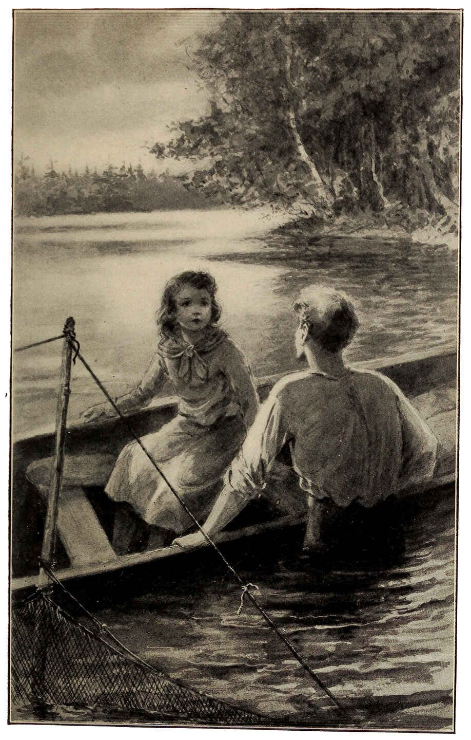 “Yes, I’m her son. I’m not so small as I look with just my head out of water. I guess I’d better climb in, if you don’t mind, and paddle you ashore.”
