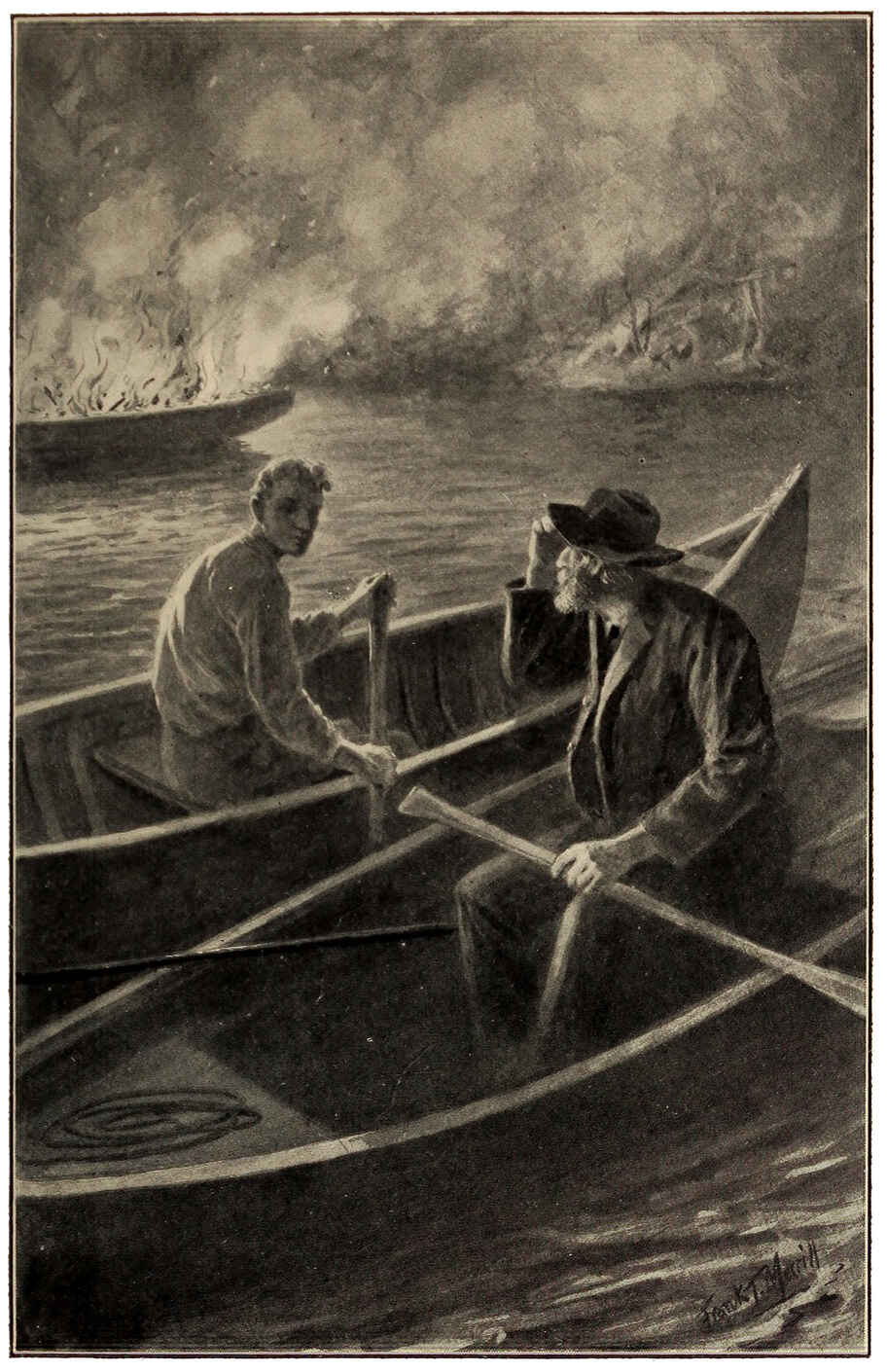 “In a big pirogue drifted against the stakes of our net,” replied the youth. “She was asleep when I first glimpsed her and I thought it was somebody dead. It gave me a start, I can tell you.”